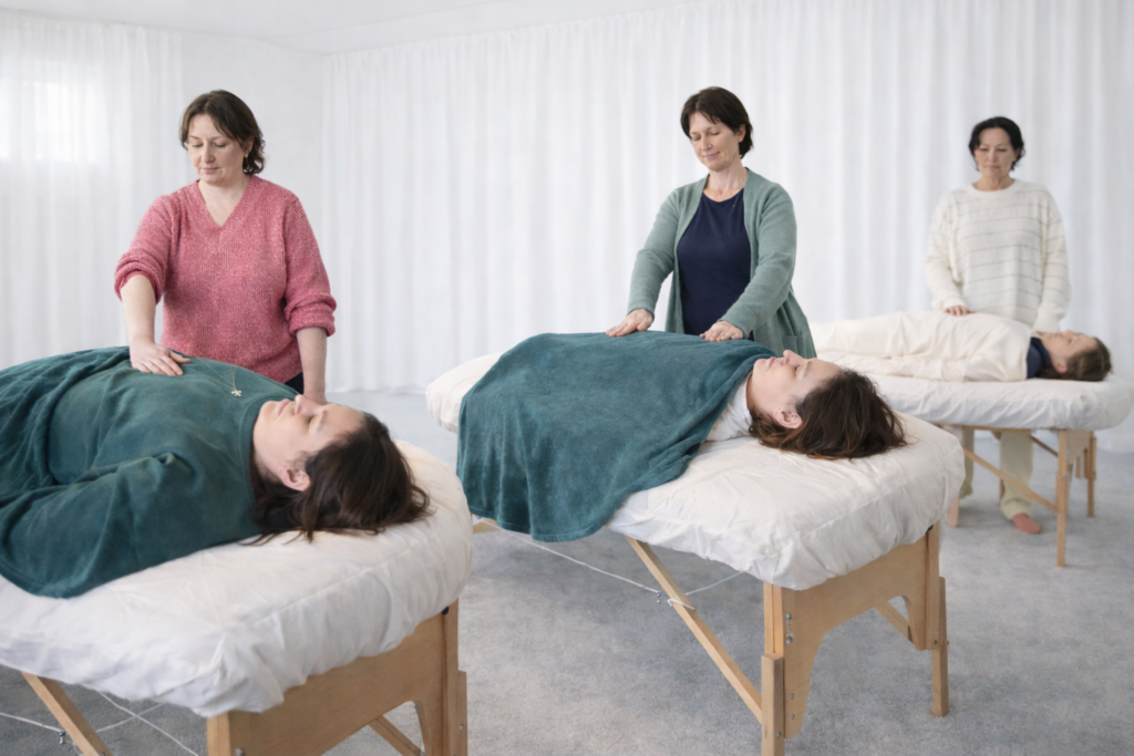 Sommigen voelen tintelingen, warmte, spontane bewegingen of een diepe rust tijdens de sessie.