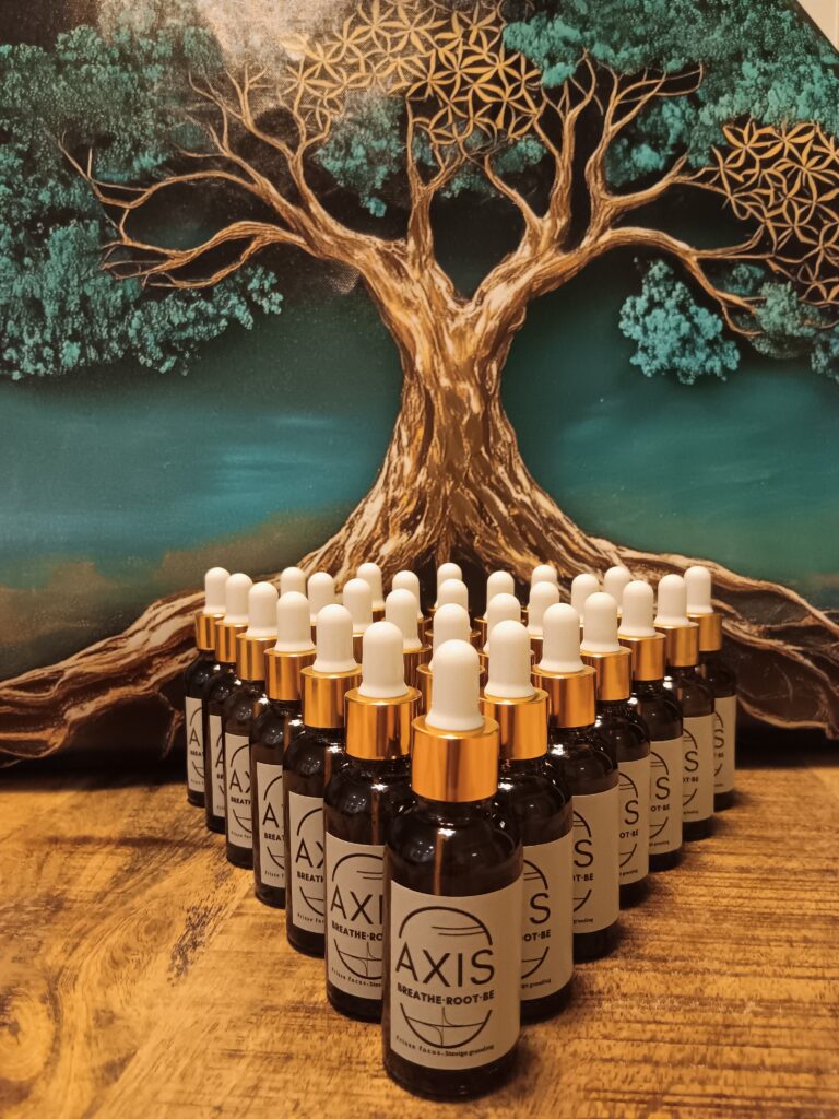 Met trots presenteert AdemRuimte haar allereerste spagyrische essence: AXIS – Breathe Root Be.
